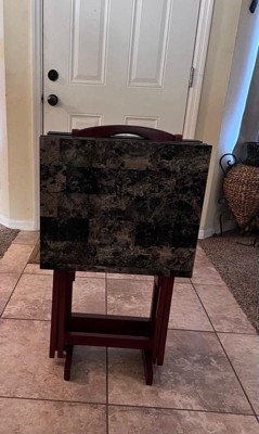 Product Name: Linon faux marble wood tray table set new arrivals
