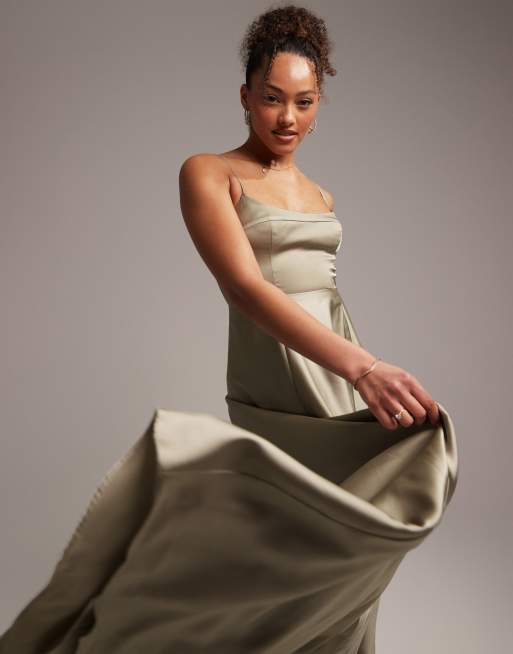 Product Name: Robe longue satin vert new arrivals