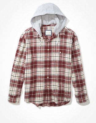 Product Name: Ae plaid flannel hooded button up shirt new arrivals