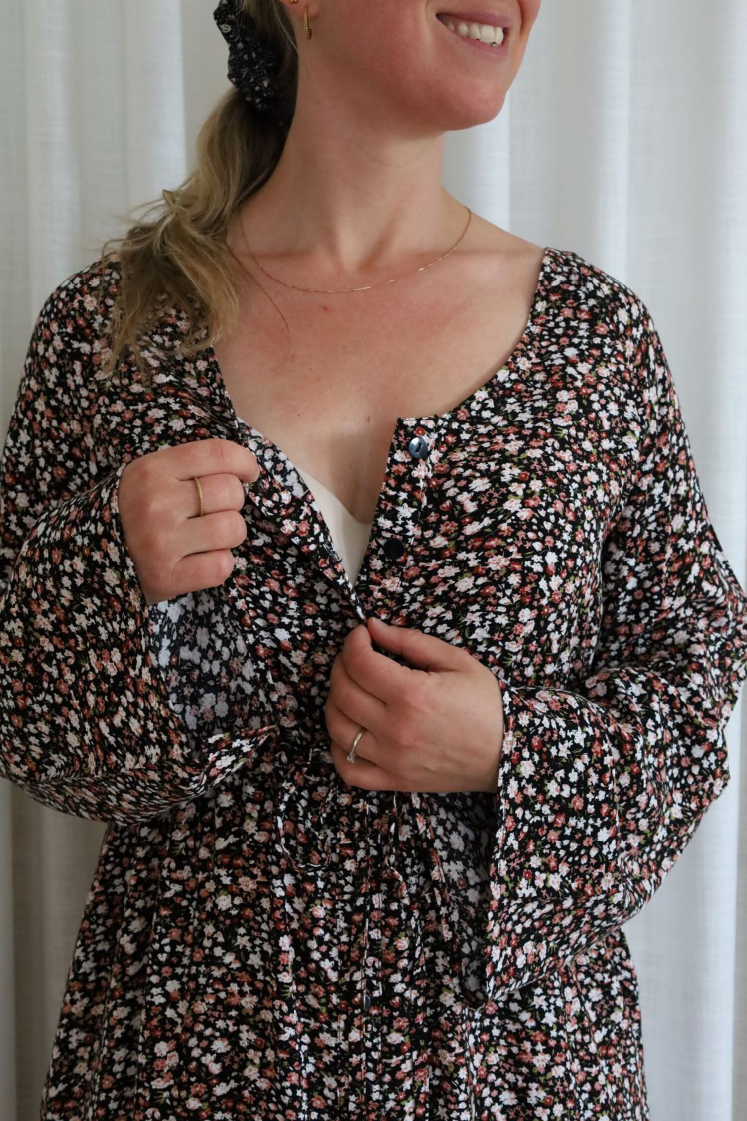 Product Name: Robe noir fleurie manche longue new arrivals
